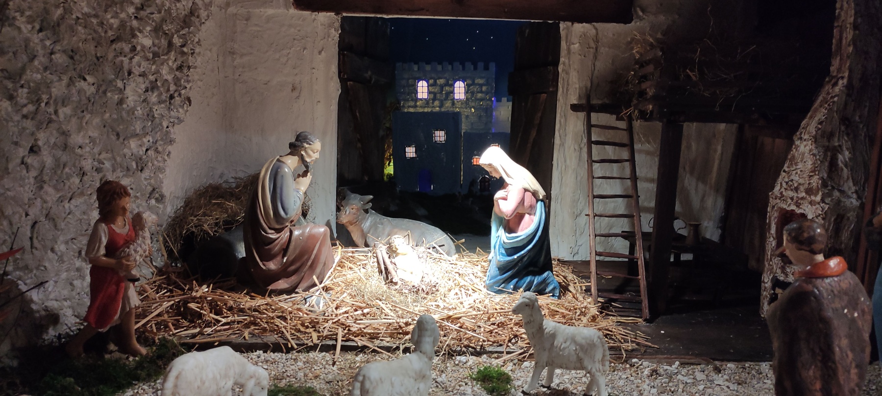 Un gruppo di genitori generosi si occupa con fantasia e laboriosità di allestire la memoria tradizionale del “Verbo fatto carne” che è Gesù Cristo, nato dalla Vergine Maria.